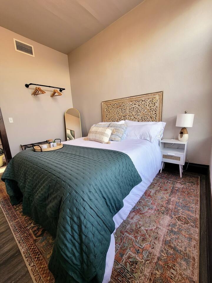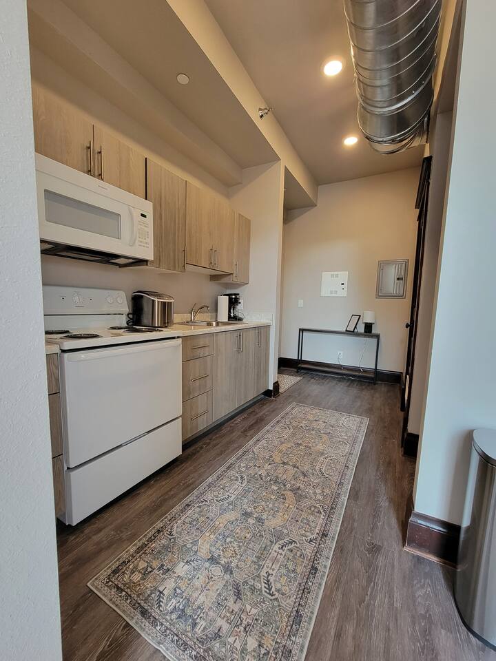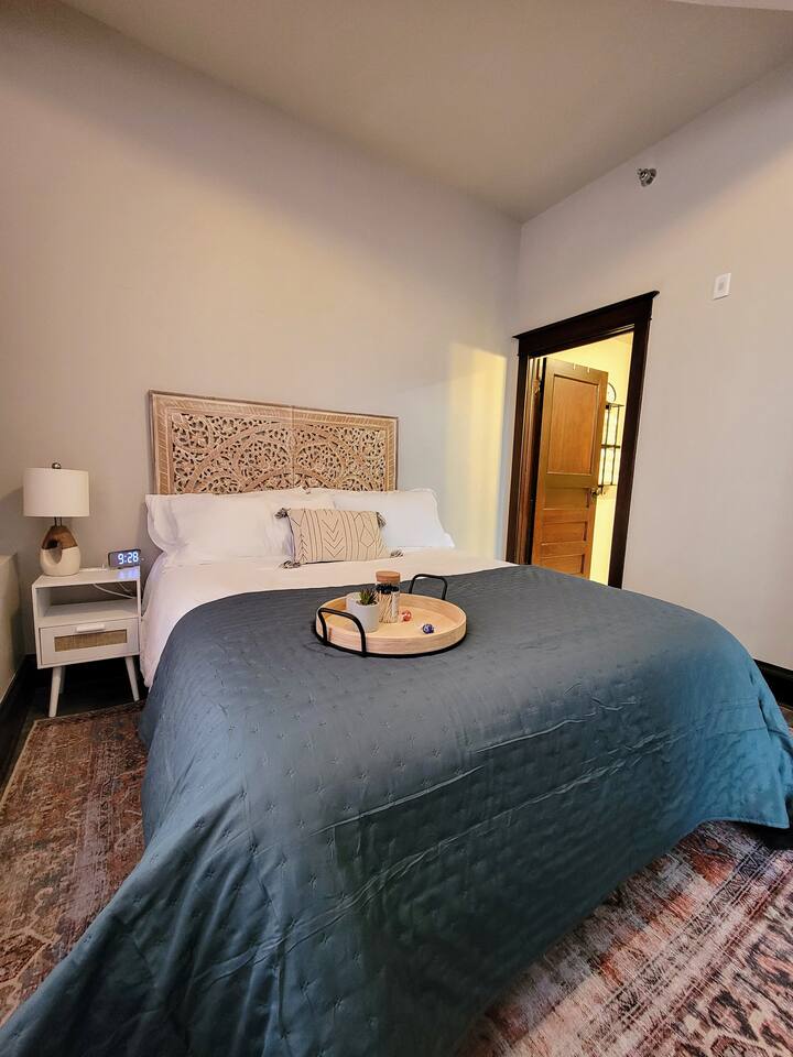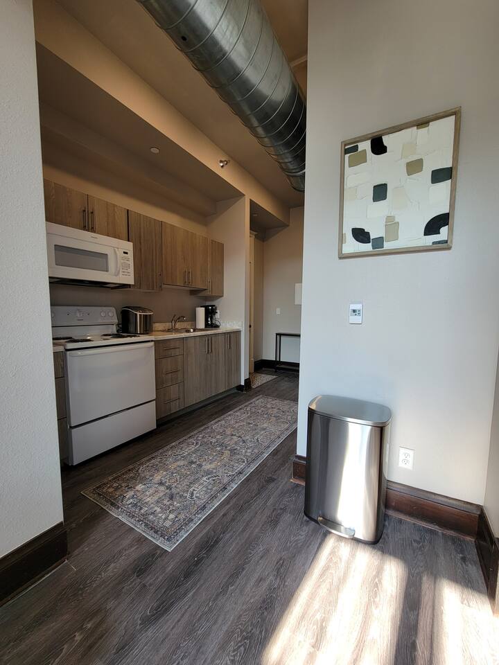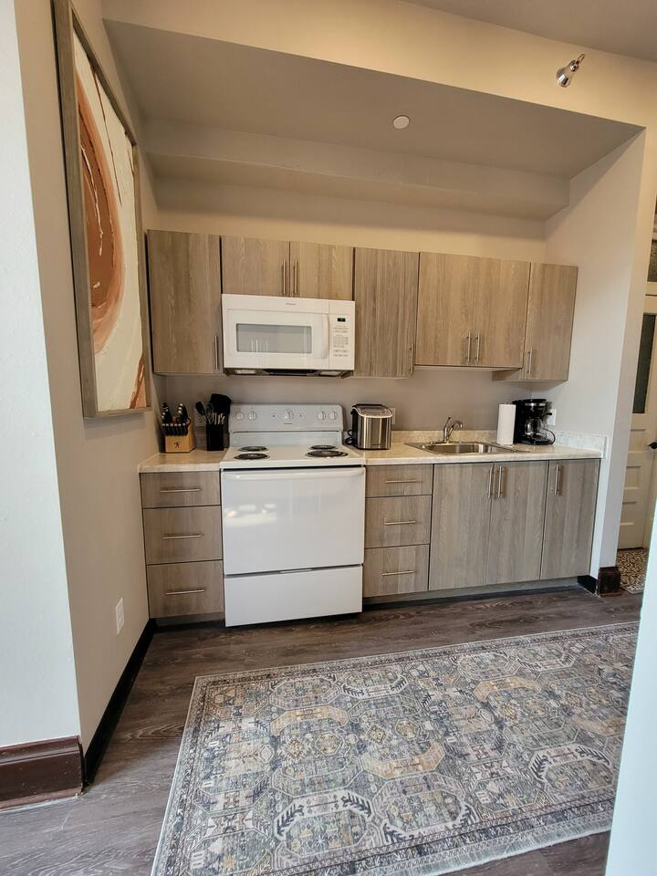 Stay in our historic corner-apartment nestled in a downtown building in Mitchell, SD, once the headquarters for George McGovern's presidential campaign! Location: Situated in the heart of downtown, steps away the iconic Corn Palace, local restaurants, bars, and unique shops. Accommodation: Inviting atmosphere featuring two bedrooms with plush queen-sized beds and one bathroom. Amenities: Free parking, WiFi, TV with complimentary Netflix, fully equipped kitchen, hairdryer, fitness room.