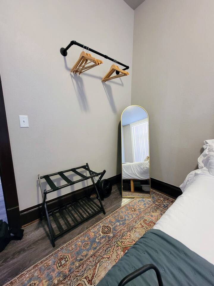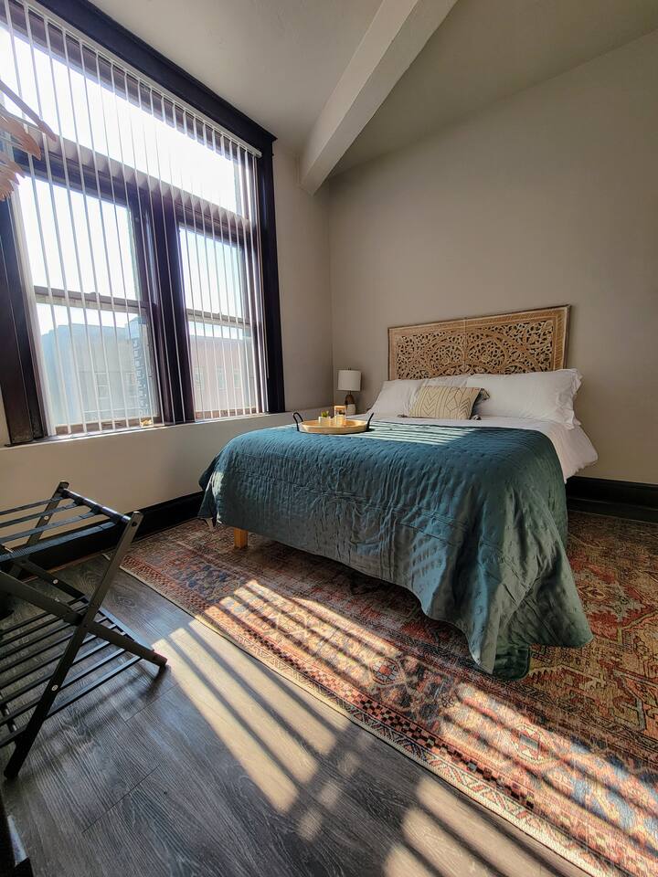 Bathroom: The bathroom can only be accessed through one of the bedrooms. Noise: This apartment faces Main Street so there can be traffic noise, especially in the evening. We provide a fan and earplugs for guests.