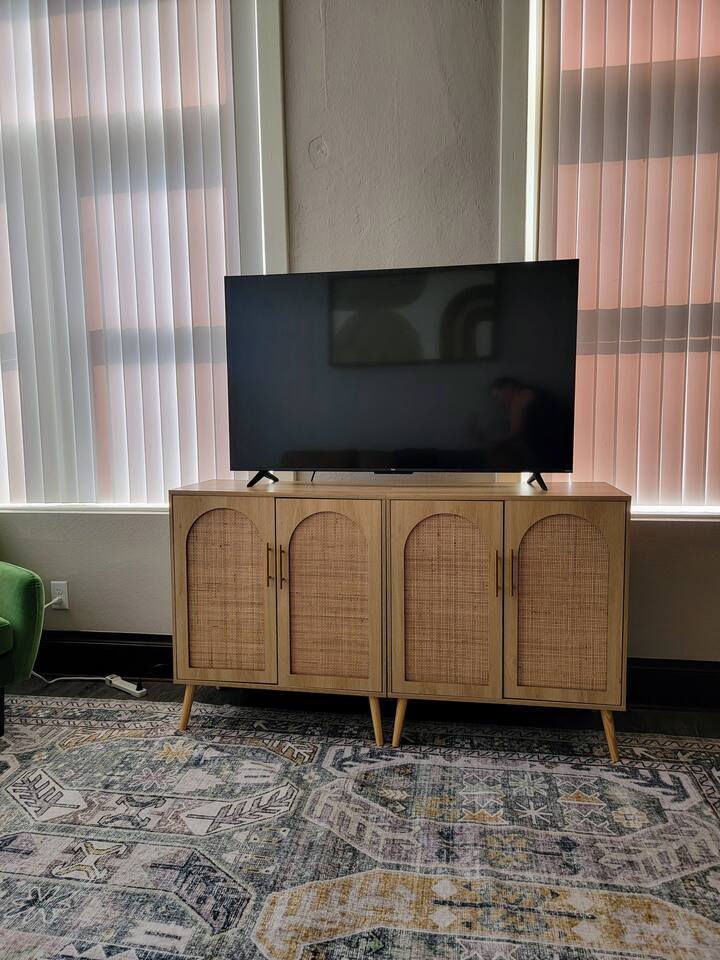 Welcome to your charming downtown getaway in historic Mitchell, SD! Nestled within a building steeped in history, once home to George McGovern's campaign headquarters, this cozy two-bedroom apartment offers the perfect blend of modern comforts and historic charm. Step inside to discover a spacious 1,000 square feet of living space, adorned with tasteful décor and flooded with natural light. The open-concept layout seamlessly connects the living, dining, and kitchen areas, creating an inviting atmosphere for relaxing and entertaining. AMENITIES After a day of exploring the vibrant downtown scene, unwind in the comfort of a queen-sized bed, complete with plush linens and pillows. Catch up on your favorite shows or stream a movie on the 55" TV, equipped with complimentary Netflix and high-speed WiFi. DINING Prepare delicious meals in the fully-furnished kitchen, stocked with all the essentials you need to whip up a culinary masterpiece. And with a plethora of shops, bars, and restaurants just steps away, you'll have plenty of dining options to explore. DOWNTOWN LOCATION Wake up to the picturesque views of downtown Main Street from your window, or take a leisurely stroll to the iconic Corn Palace, located just minutes from your doorstep. EXTRA AMENITIES In addition to the apartment's amenities, guests have access to shared laundry facilities and a fitness room within the building, ensuring convenience and comfort throughout your stay. PARKING With free parking included, you can explore the city with ease, knowing that your vehicle is safely parked just moments away. Experience the best of downtown Mitchell from this historic gem - book your stay today!